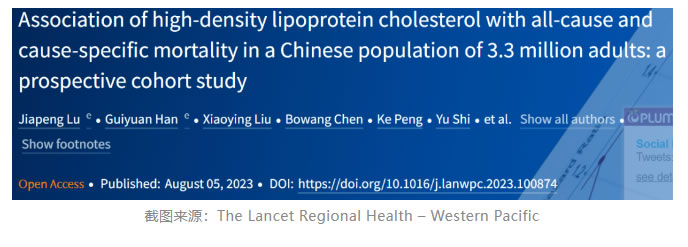 近期發(fā)表于The Lancet Regional Health – Western Pacific的一項研究,旨在全面評估中國人群中HDL-C與全因死亡率和病因特異性死亡率的關(guān)系,并評估高HDL-C對比低HDL-C的死亡率,從而為人群層面的HDL-C管理策略提供新的知識和深入的見解。