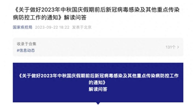 9月22日,國務院聯防聯控機制疫情防控組發布通知,要求做好2023年中秋國慶假期前后新冠病毒感染及其他重點傳染病防控工作,提到登革熱、瘧疾等蚊媒傳染病輸入擴散風險增大。